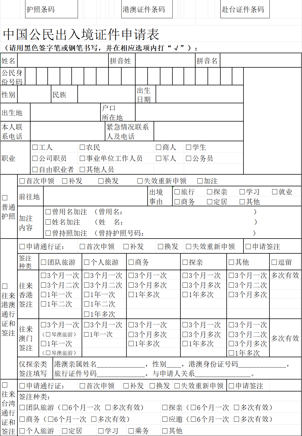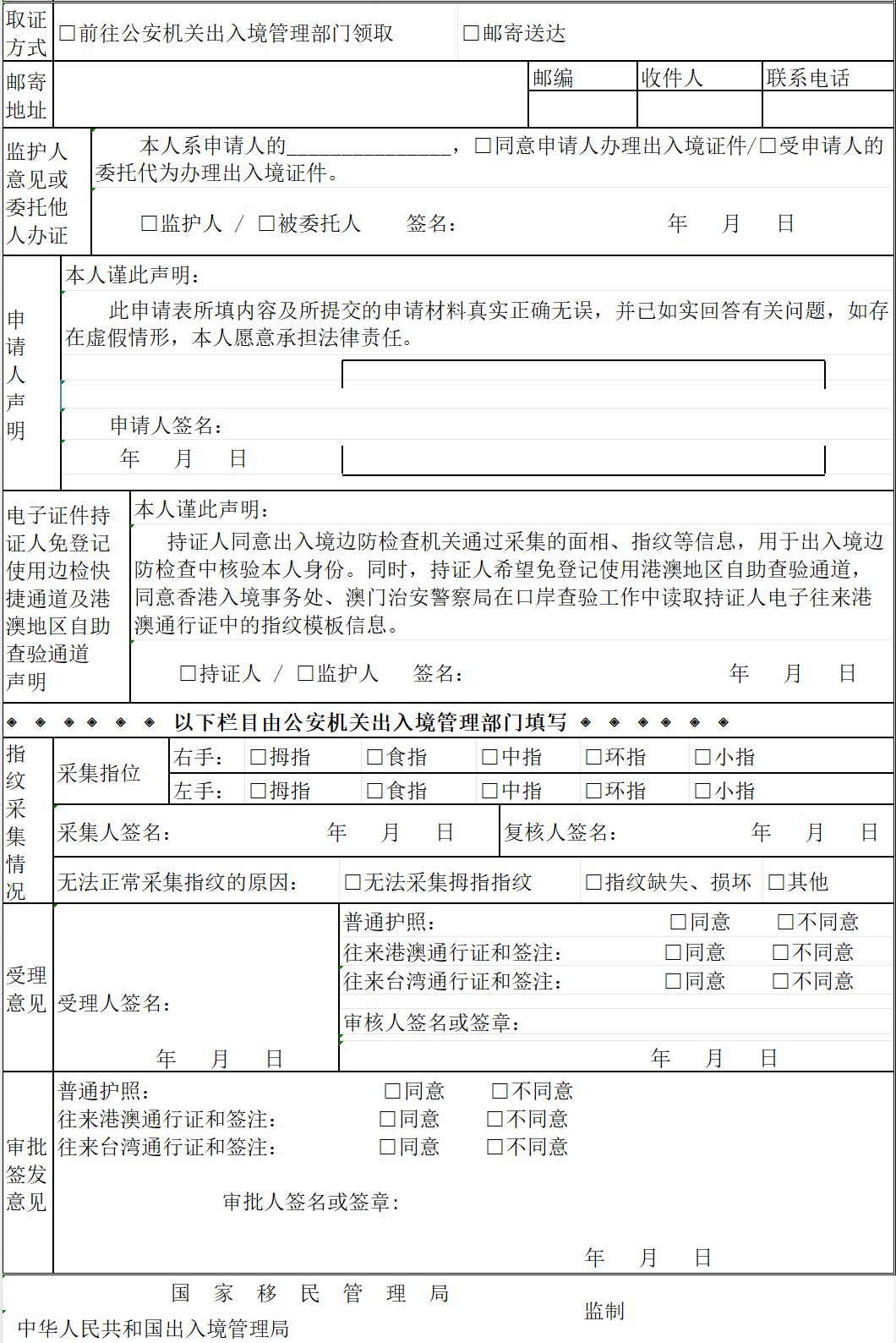 (二)中国公民出入境证件申请表;