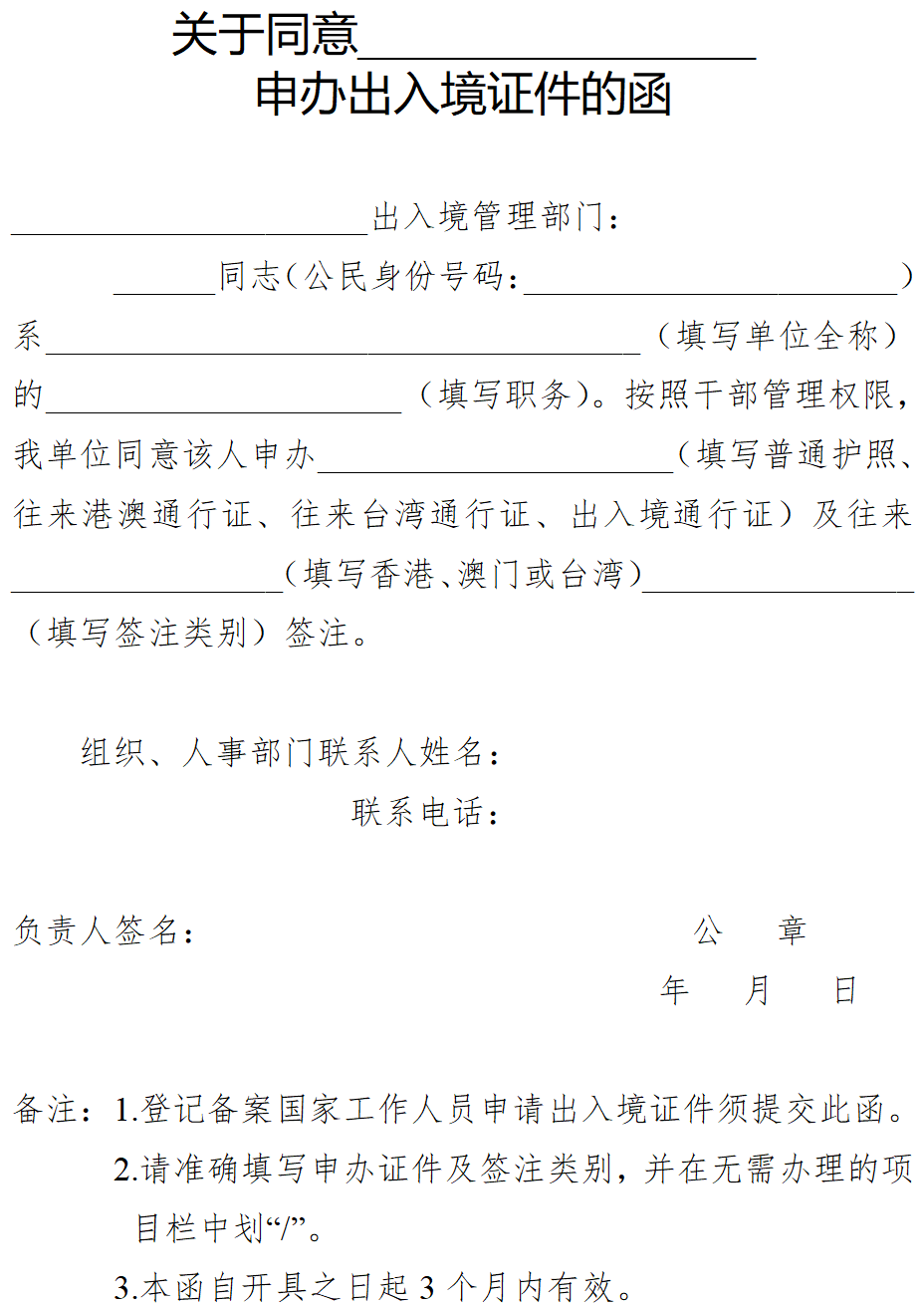 4、国家工作人员应当按照有关规定,提交本人所属工作单位或者上级主管单位按照人事管理权限审批后出具的同意出境的意见;