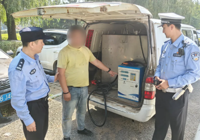 近日,交管支队机动大队民警运用警用无人机开展空中巡查时,在一处停车场发现可疑一幕。一辆面包车旁,有人正在对另一轿车进行加油操作,现场没有任何安全防护措施。掌握初步情况后,交管支队立即将线索上报市局情报指挥中心,联动内保支队迅速开展工作。办案民警发现,嫌疑人十分警觉,经常变换交易地点,大多现金交易,一有风吹草动立即撤离。在警用无人机空中配合下,办案民警立即开展抓捕行动。见到突然出现的民警,嫌疑人企图拔掉油管逃窜,然而此时民警早已形成合围,迅速将嫌疑人控制。现场没有任何消防设施,相当于埋下了一颗“定时炸弹”。民警在经过改装的面包车内查获了储油罐、加油机和计价器,电线私拉乱接,油罐锈迹斑斑,弥漫着浓烈的汽油味。