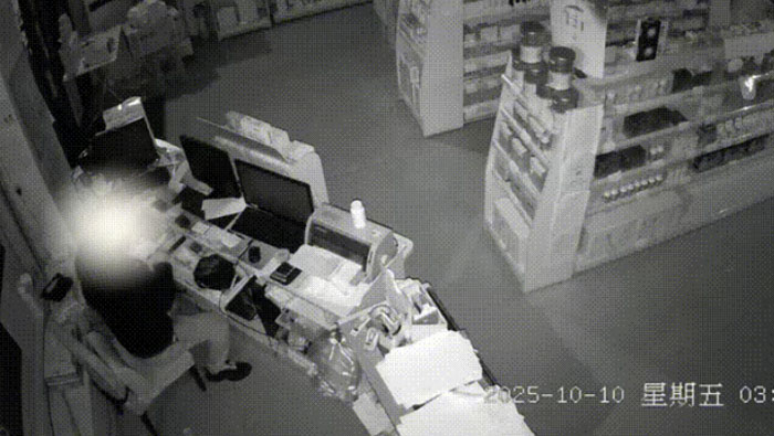 10月10日9时许,沈河分局大南派出所接到辖区某商户报警,称店铺门锁被破坏,收银台内现金被盗,民警立即赶到现场。店内监控录像显示,当天凌晨4时26分,一名黑衣男子撬开门锁进入室内,快步走向收银台,依次拉拽抽屉翻找,并未发现值钱物品。随后,他将目光锁定在一个上锁的抽屉,他从兜内掏出工具,又拿起桌子上的剪刀撬开抽屉,将一千余元现金盗走。