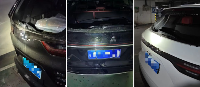 民警通过细致调查,发现犯罪嫌疑人所选择的作案目标均为SUV车型的私家车,通过砸破后车窗的方式钻进车内实施盗窃。民警调取周边公共视频,发现凌晨2时许,有4名戴口罩的男子在案发时间进入停车场,该团伙在选定作案目标后,其中一人抡起灭火器猛力砸向后车窗,另一名同伙钻入车内翻找财物,其他人在周边“放风”。从砸车到离开,每台车用时不超过3分钟。约一小时后,4人驾驶一台白色轿车逃离。