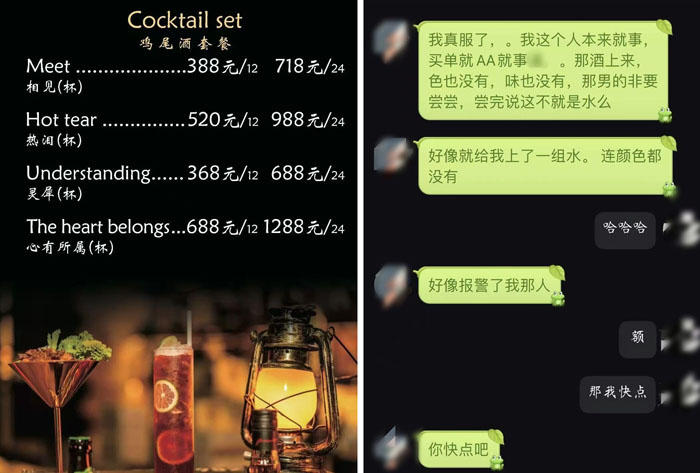 刘先生喝下数杯鸡尾酒和两瓶红酒,之后仍毫无醉意,“这酒没有颜色、没啥味道,这不就是水嘛……”心生疑虑的他借故离开,随即报警。
