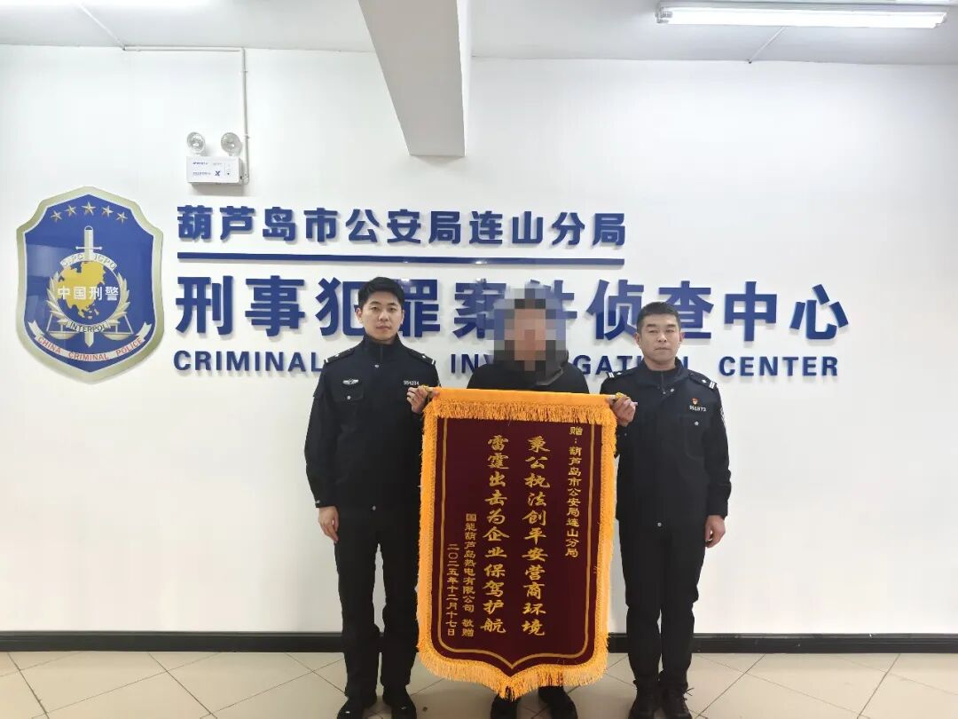 近日,某热电有限公司向葫芦岛市局连山分局刑侦大队赠送锦旗,感谢其将私改暖气管线的团伙成员全部抓获,为企业创造了良好的营商环境。