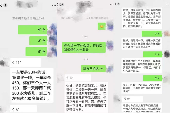 该团伙虚构缴纳“人身意外险、货物损失险”等理由,收取务工人员100至500元费用,并表示干满一个月可退款,以打消求职者顾虑。