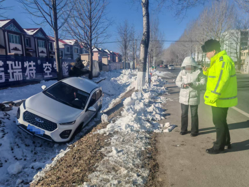1月2日,交管支队振安一大队执勤警力在辖区巡逻至304国道金山镇路段时,发现一辆轿车意外滑入路边排水沟中,随即停车上前查看。经询问驾驶人,事故未造成人员受伤。随后,交警立即协助当事人联络保险公司及拖车公司赶赴现场。户外气温较低,民警注意到车内还有随行儿童,当即决定先将孩子接至警车内取暖,待现场事故处理有序开展后,为避免孩子长时间滞留在现场,交警又贴心协调车辆,将孩子稳妥送回家中。对于交警在寒风中及时伸出的援手,特别是对孩子贴心细致的照顾,当事人表示由衷的感谢:“谢谢你们,你们辛苦了!”