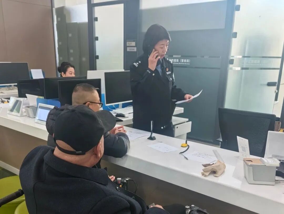 新年假期第一天,一名户籍地为吉林省的残疾老人,来到甘井子公安分局政务服务大厅,老人来连投靠子女过年,期间不慎将身份证丢失。